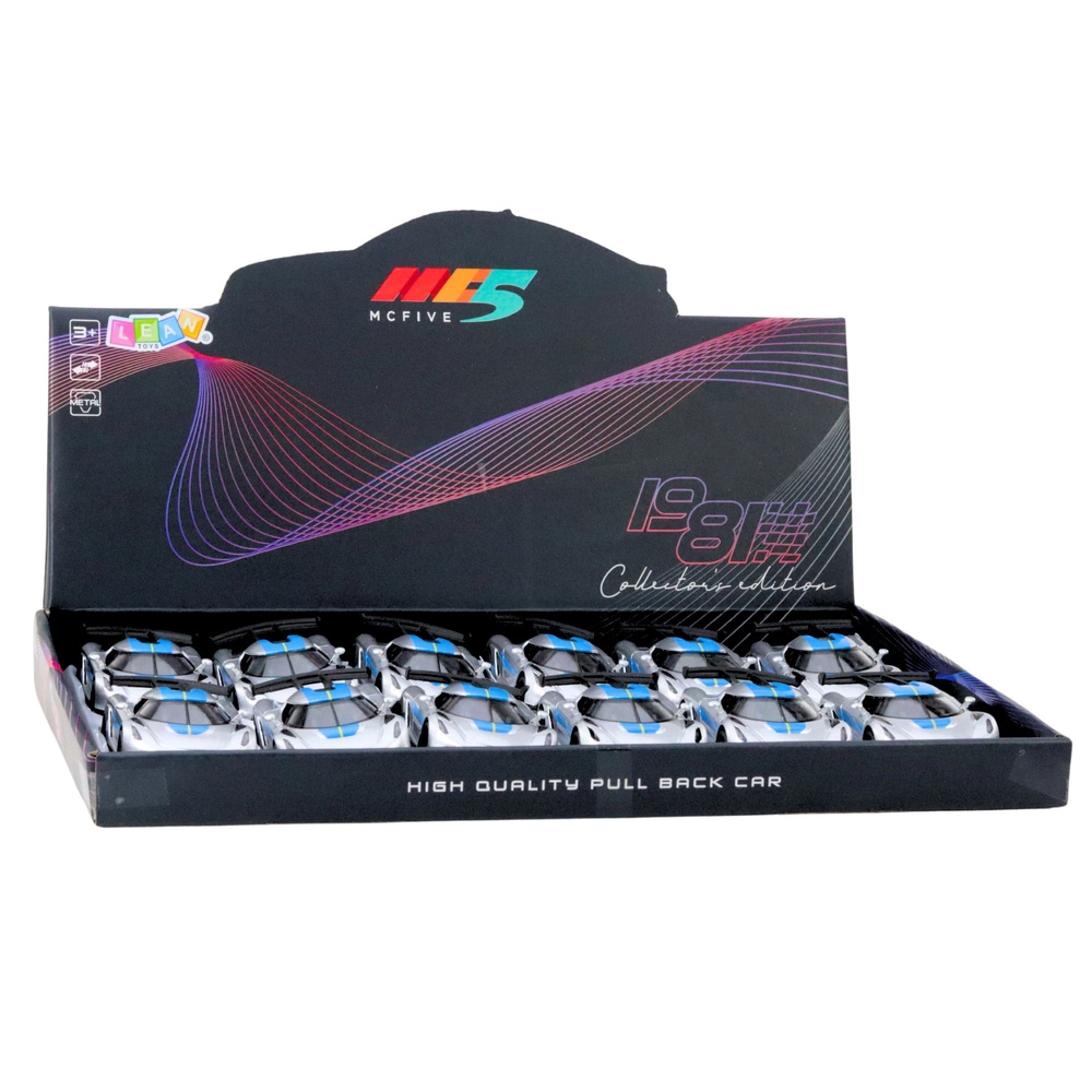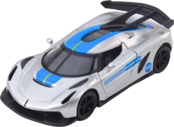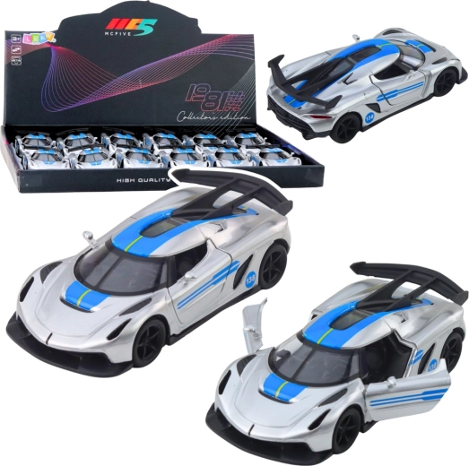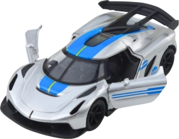 Stijlvol metalen sportautootje op schaal 1:32 dat zowel jonge racers als verzamelaars zal verrassen. Het heeft een metalen carrosserie, openslaande deuren en een pull-back terugtrekmotor voor dynamisch rijden. De aantrekkelijke zilveren look met blauwe accenten en de gedetailleerde afwerking zorgen voor een realistische uitstraling en veel speelplezier thuis en onderweg.