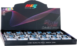 Ontdek dit compacte raceautootje dat uitblinkt door een duurzame metalen carrosserie en een moderne sportieve look. Trek het lichtjes naar achteren en dankzij de pull-back aandrijving schiet het naar voren. Openslaande deuren verhogen de authenticiteit en nodigen uit om het gedetailleerde interieur te verkennen.