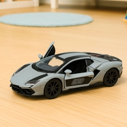 Stijlvol metalen raceautootje op schaal 1:32 dat zowel kleine als grote fans van snelle wielen zal bekoren. Het biedt een stevige metalen carrosserie, openslaande deuren voor een realistischer spel en een spannende terugtrekmotor (pull-back), waarmee je alleen hoeft terug te trekken, los te laten en de race te starten. De compacte afmetingen en het sportieve design in grijs met zwarte details maken het tot een ideaal speelgoed én verzamelobject.