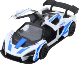 Geniet van dynamisch rijden met deze gedetailleerde sportwagen op schaal 1:32. De metalen carrosserie verhoogt de duurzaamheid bij dagelijks spelen, terwijl de openslaande deuren extra realisme toevoegen. Dankzij het pull-back mechanisme hoef je de auto alleen licht naar achteren te trekken en los te laten – hij schiet naar voren en is klaar voor spannende races.