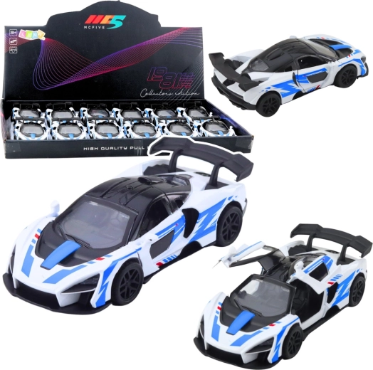 Het autootje is ideaal voor spel en verzamelen. Sportieve looks, aerodynamische lijnen en contrasterende kleurstelling in wit met blauwe en zwarte elementen trekken meteen de aandacht. Het compacte formaat maakt het gemakkelijk om het speelgoed overal mee naartoe te nemen – tijdens een wandeling, naar de opvang of op reis.