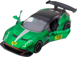 Stijlvol metalen raceautootje op schaal 1:32 met een realistische sportieve look, een metalen carrosserie voor extra duurzaamheid en openende deuren voor nog leuker spel. Dankzij de pull-back aandrijving hoef je het alleen naar achteren te trekken en los te laten – het autootje rijdt vanzelf naar voren. De compacte afmetingen, het opvallende groene design met zwarte details en de hoogwaardige afwerking zullen zowel kinderen als kleine verzamelaars bekoren.