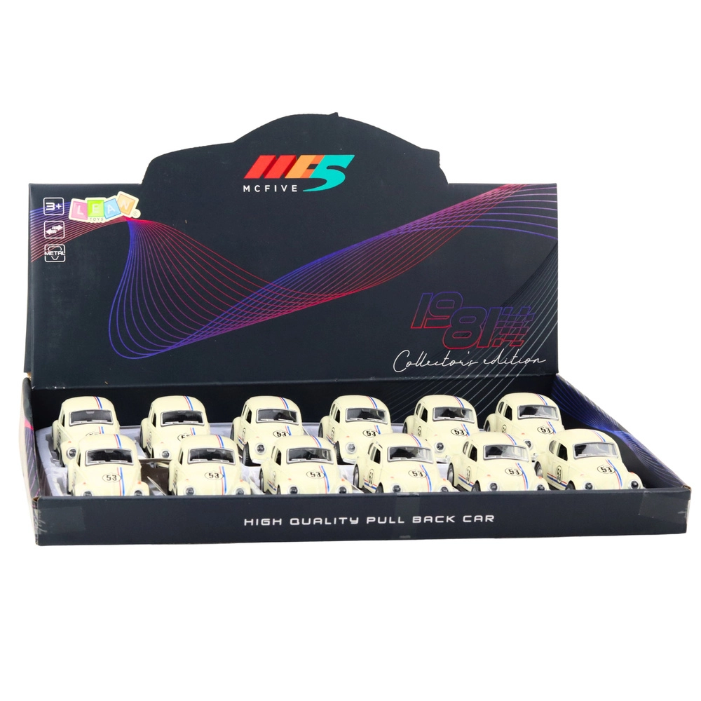 Ontdek de charme van een klassieke auto-icoon in compact formaat. Dit metalen Kever-model op schaal 1:32 blinkt uit door verfijnde details, een robuuste constructie en soepel rijden op vlakke oppervlakken. Dankzij de pull-back aandrijving hoef je de auto alleen zachtjes naar achteren te trekken en los te laten – het speelplezier begint vanzelf.