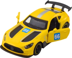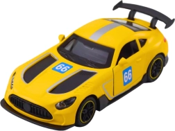 Het gele raceautootje op schaal 1:43 blinkt uit door realistische details en robuuste afwerking. De metalen carrosserie verhoogt de duurzaamheid, terwijl de openende deuren de fantasie prikkelen en kinderen helpen hun eigen racescenario’s te creëren. De pull-back aandrijving zorgt voor een snelle start – trek gewoon naar achteren en laat los.