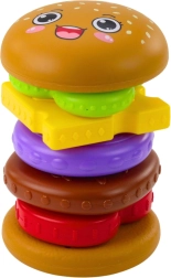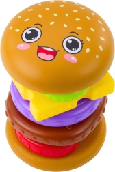 Deze leuke en educatieve speelgoedset bootst de lagen van een hamburger na – broodjes, kaas, sla en plakjes “vlees”. Kinderen kunnen hun eigen “recepten” bedenken, bouwen en weer uit elkaar halen, waarmee ze spelenderwijs hun geduld, logisch denken en visuele differentiatie van kleuren en vormen versterken.