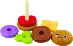 Elk onderdeel stelt een hamburgeringrediënt voor. Kinderen oefenen volgorde, kleuren en vormen en trainen daarbij hun fijne motoriek en concentratie.