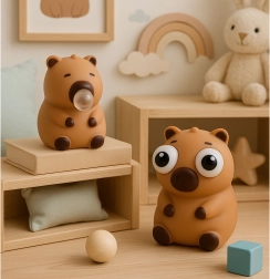 Schattige antistress-knijpspeelgoed in de vorm van een capibara voor kinderen en volwassenen. Bij het indrukken verschijnt er een transparante bubbel of springen grote ogen uit, wat direct ontspanning en plezier brengt. Gemaakt van een zacht, elastisch materiaal dat na het knijpen terugkeert naar zijn oorspronkelijke vorm. Ideaal voor school, kantoor en onderweg.