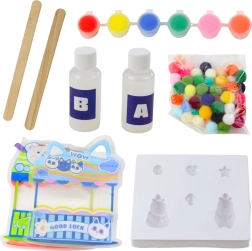 Met deze creatieve DIY-set kunnen kinderen stap voor stap originele gelfiguren mengen, kleuren en gieten. Dankzij de meegeleverde pigmenten, glitters en accessoires personaliseer je elke creatie eenvoudig. De siliconen mal biedt meerdere vormen op één plek en het flexibele materiaal maakt het verwijderen van de afgewerkte figuren gemakkelijk.