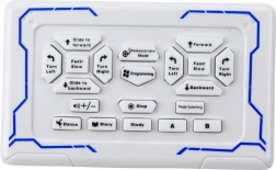 Vooruit/achteruit, links/rechts, snelheidskeuze, stop, programma, demo, dans, verhaal, leren – alles op een overzichtelijke controller voor comfortabel spel.