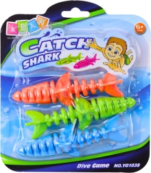 De set bevat een blauwe, groene en oranje haai – heldere kleuren maken het zoeken onder water eenvoudiger en zorgen voor overzichtelijk spel.