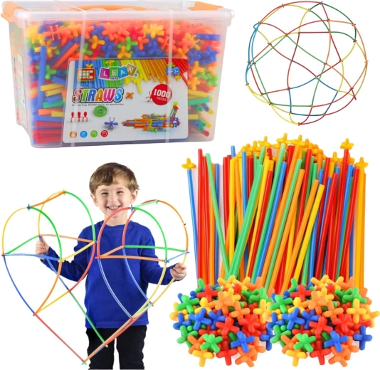 De creatieve bouwset STRAWS biedt tot 1000 kleurrijke onderdelen voor het maken van zowel vlakke als driedimensionale modellen. Buigzame rietjes en sterconnectoren maken het mogelijk stabiele constructies in meerdere hoeken en richtingen te bouwen. Het spel bevordert fijne motoriek, ruimtelijk inzicht en creativiteit, en dankzij de praktische koffer is alles eenvoudig te vervoeren en op te bergen.