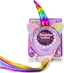 Magische haarband met eenhoornthema tovert elk kind om tot een ster uit een sprookjeswereld. De regenboogkleurige hoorn, glinsterende oortjes en lange meerkleurige lokken nodigen uit tot het vlechten van staartjes en het maken van fantasierijke kapsels. Het lichte en universeel passende ontwerp zit comfortabel, ook bij langer dragen – ideaal voor spelen, verjaardagen, carnavals en fotosessies.
