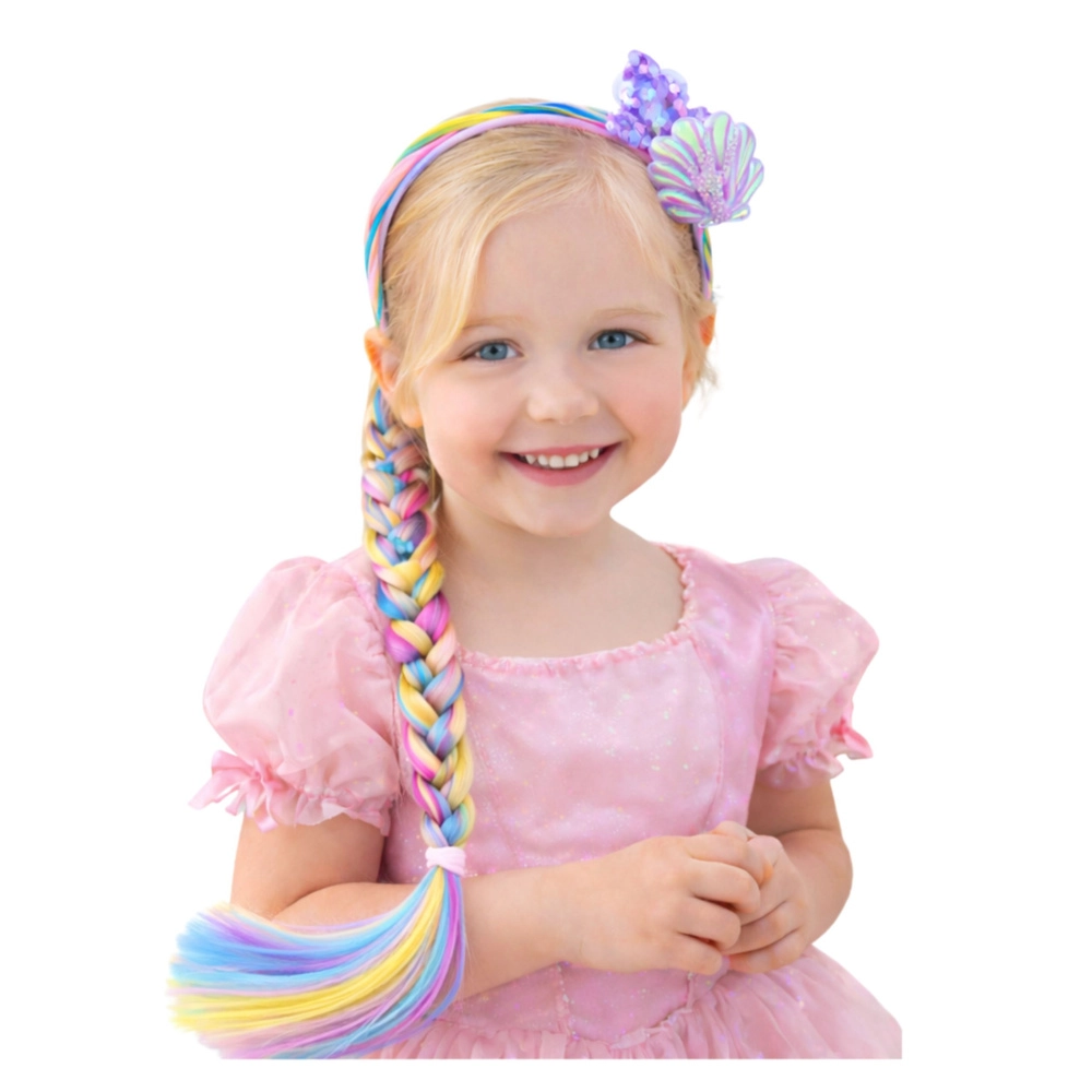 Geef kinderen plezier in het creëren van kapsels met een haarband geïnspireerd op de wereld van zeemeerminnen. De lange regenbooglokken maken het eenvoudig om opvallende vlechten te maken en originele stijlen te creëren voor feestjes, carnaval en dagelijks spelen. De charmante decoratie met zeemeerminstaart geeft de look een magische touch.