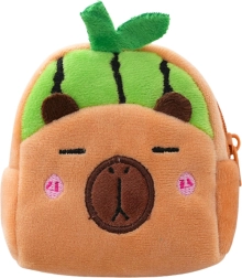 Schattige pluche portemonnee in de vorm van een capibara met een groene-meloenmotief, ideaal voor kinderen en liefhebbers van zachte accessoires. Licht van gewicht, prettig om aan te raken en veilig voor dagelijks gebruik. Dankzij de compacte afmetingen van 9,5 × 8 cm past hij gemakkelijk in een handtas, rugzak of zak. Ritssluiting houdt muntjes en kleinigheden veilig, en de praktische plastic clip maakt het mogelijk om hem aan een tas, rugzak of sleutels te bevestigen.