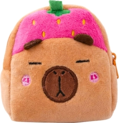 Deze schattige portemonnee/mini etui van zachte pluche biedt plaats aan muntjes, briefgeld, oortjes, sleutels en andere kleinigheden. Het ontwerp met een slapende capibara met een roze aardbeienmutsje en geborduurde details zal zowel kinderen als volwassenen aanspreken die van een zoete, zachte stijl houden.