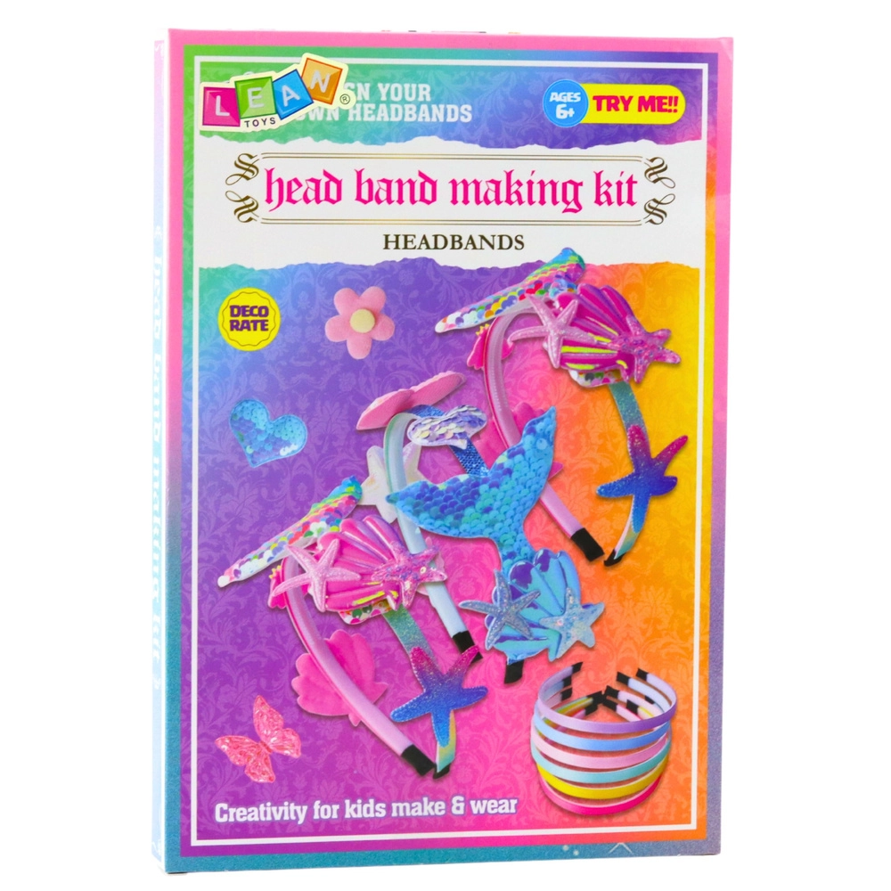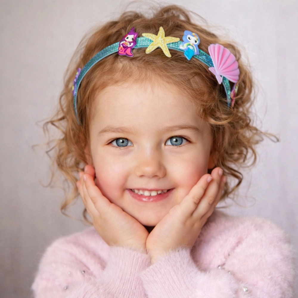 Ontdek een leuke creatieve set voor kinderen waarmee ze eenvoudig hun eigen haarbanden in pasteltinten met zeethema kunnen maken. Dankzij de zelfklevende decoraties is knutselen makkelijk, veilig en zonder lijm of schaar. De set ontwikkelt creativiteit, fijne motoriek en laat je originele accessoires met schubben, zeesterren en zeemeerminstaartjes maken.