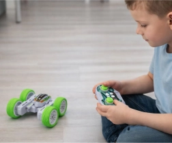 De lichte en toch duurzame stuntauto is een ideale keuze voor dynamisch kinderspel. De compacte afmetingen passen in elke kinderhand en het robuuste chassis is klaar voor veelvuldig kantelen en stunts. Grote rubberen wielen zorgen voor uitstekende tractie op gladde vloeren en stoepen, terwijl lichteffecten de rijbeleving versterken.