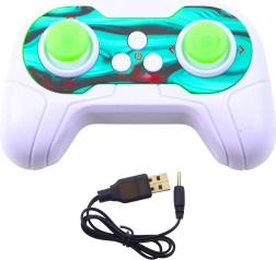 De ergonomische controller ligt goed in de hand en maakt precieze manoeuvres mogelijk. In de verpakking zit een USB‑kabel voor eenvoudig opladen van de voertuigaccu’s.