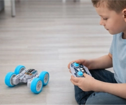 De afstandsbediening maakt rijden vooruit/achteruit en links/rechts mogelijk, terwijl LED-verlichting elke stuntshow extra glans geeft. Spelen ontwikkelt coördinatie, reactievermogen en fijne motoriek bij kinderen, en dankzij de geïntegreerde accu’s is de auto na een korte laadtijd klaar voor actie.