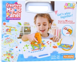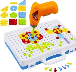 Deze educatieve bouwset ondersteunt op speelse wijze leren en vaardigheidsontwikkeling. Kinderen ontwerpen en leggen zelf patronen op de montageplaat, schroeven kleurrijke onderdelen vast en trainen de precisie van hun bewegingen. De veilige plastic boormachine op 2× AA-batterijen en aanvullende tools zorgen voor een realistische ervaring voor kleine doe-het-zelvers.