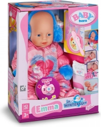 Ontdek de pop BABY born Emma 43 cm in een zachte winteroverall, die uitnodigt tot creatief rollenspel. Dankzij realistische details en uitgebreide accessoires genieten kinderen van verzorging van de baby, voeden en verschonen. Ideaal voor het ontwikkelen van fantasie en sociale vaardigheden tijdens leuke winterse avonturen thuis.