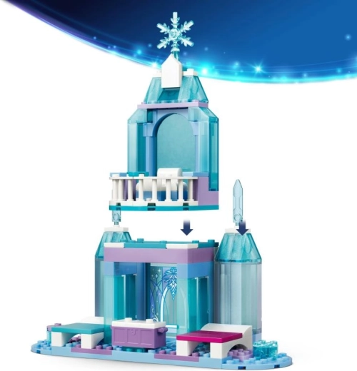 Stap een ijzige fantasiewereld binnen. Het twee verdiepingen tellende paleis in zachte blauw‑paarse tinten met transparante “ijzige” elementen biedt een troonzaal, balkon, twee bedden en een knusse kitchenette. Een aparte baan met trap en drie sleeën zorgt voor dynamisch spel – ideaal om eigen verhalen te creëren met Elsa, Anna, Olaf en het kleine draakje Bruni.