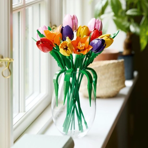 Ontdek een creatieve manier om je interieur te verfraaien: deze set uit de LEGO Botanicals-lijn laat je een indrukwekkend tulpenboeket bouwen met gedetailleerde bloemen in tinten rood, geel, roze, oranje en paars. Verstelbare stelen en groene bladeren maken het eenvoudig het boeket aan te passen aan de ruimte en de stijl van je vaas.