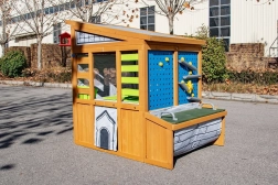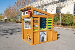 De slimme opbergrekken – vakken, bekers, bakken en de buitenbank – helpen alles netjes te houden en bevorderen zelfstandigheid. Het huisje heeft ook een klassiek deurtje en een kleine doorgang voor huisdieren, zodat je gemakkelijk het hele gezin bij het spel betrekt. Het moderne design, de hoogwaardige afwerking en duurzame materialen staan garant voor een lange levensduur bij gebruik in de buitenlucht, het hele jaar door.