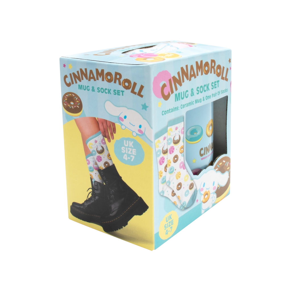 Schattige cadeau set voor Cinnamoroll-fans: lichtblauwe keramische mok 330 ml en comfortabele enkelsokken maat 37–40. Stijlvol design met donuts en het personage Cinnamoroll, ideaal als cadeau voor fans en verzamelaars. Mok met kleurrijke bedrukking, sokken van zacht en elastisch materiaal voor comfort de hele dag.