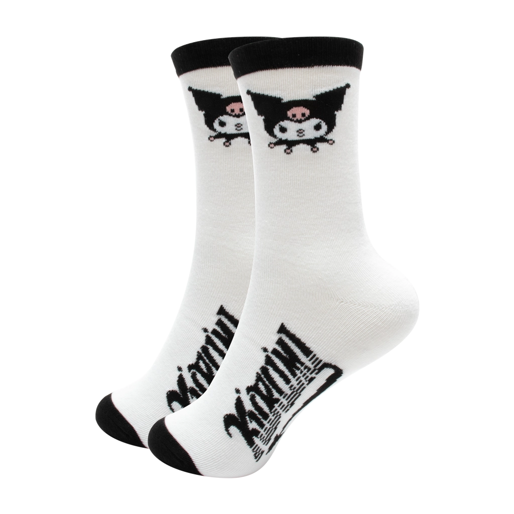 Witte sokken met zwarte boorden en Kuromi-graphics. Dankzij de mix van polyester en elastaan behouden ze goed hun vorm en dragen ze prettig.