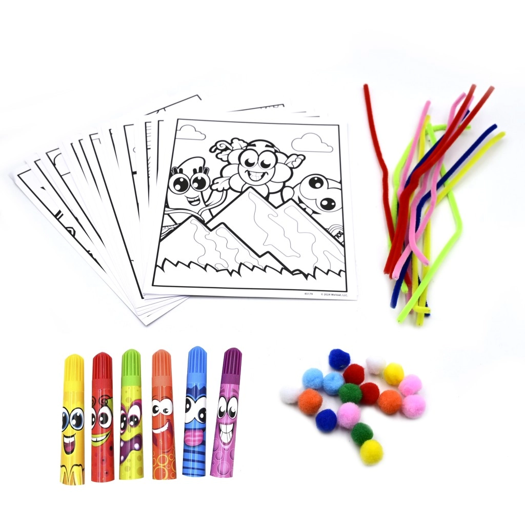 Kinderen kunnen klassiek tekenen met stiften, kleuren op nummer, kleurrijke motieven onthullen door te krassen of de afbeeldingen afwerken met stickers, pompons en pijpenragers. Alle schrijfwaren zijn niet-toxisch en veilig voor kinderen vanaf 3 jaar.