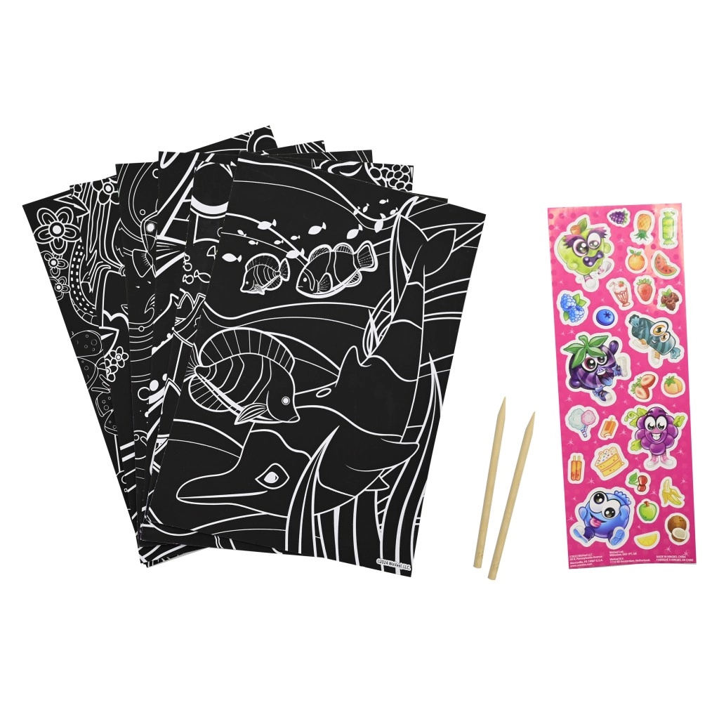 - Multicreatief plezier: kleurplaten, scratch art, stickers en 3D-versiering in één set.