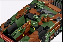 - Functionele elementen: te openen achter- en bovenluiken, draaibare koepel, hefbaar kanon, rijdende rupsbanden.