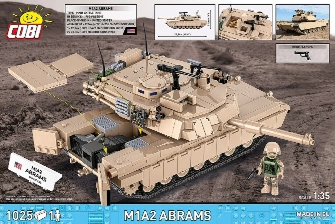 Stap in de wereld van moderne pantsertechniek en bouw je eigen symbool van kracht, precisie en duurzaamheid – de M1A2 Abrams. Het model op schaal 1:35 legt de details van de legendarische tank getrouw vast, inclusief een draaibare toren, het lange 120mm kanon en functionele rupsbanden. Dankzij duurzame prints blijft de look strak en realistisch, ook na vele uren spelen en tentoonstellen.