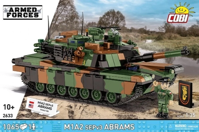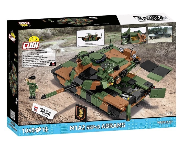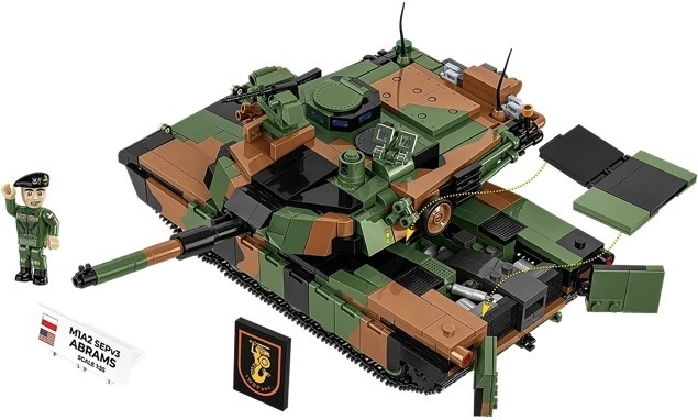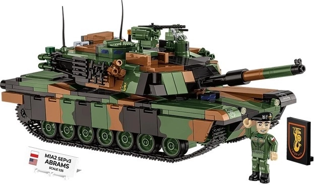 Bouw de iconische moderne tank M1A2 SEPv3 Abrams in Poolse markeringen. De set op schaal 1:35 biedt 1069 hoogwaardige onderdelen, een 360° draaibare koepel, een verstelbaar kanon, werkende rupsbanden, te openen luiken en serviceluiken. Inclusief ook een minifiguur van een tankbemanningslid, verzamelplaatjes en duurzame prints zonder stickers.