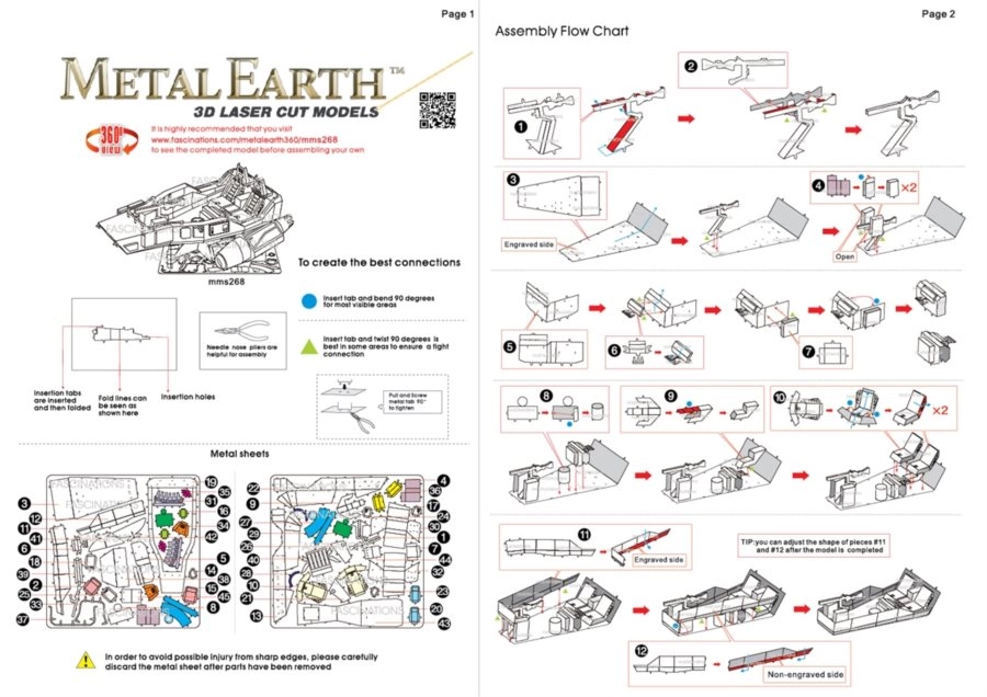 De bouwset bestaat uit stalen plaatjes van 11 × 11 cm en de onderdelen worden verbonden met slimme vergrendelingen met haakjes – zonder lijm. Voor een comfortabelere montage raden we een kleine zijkniptang en een fijne punttang aan.