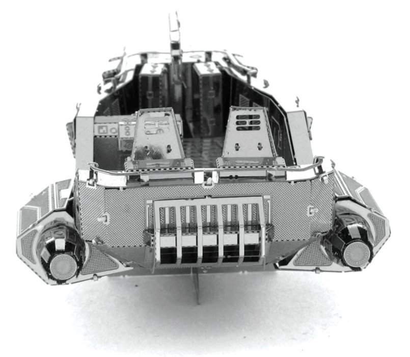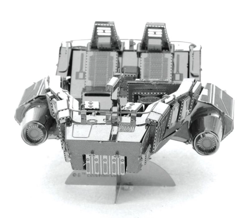 Bouw een miniatuurreplica van de iconische First Order snowspeeder. Dankzij de lasergravure komen panelen, klinken en ventilatiedetails prachtig tot hun recht, wat het model een authentieke look geeft. Het afgewerkte model staat geweldig als designdecoratie thuis, op kantoor of op school.