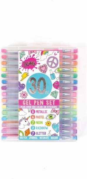Ontdek het plezier met onze set van 30 gelpennen MAKE IT REAL, perfect voor tekenen, schrijven en schone kunsten in dagboeken of notitieblokken. Deze set bevat: