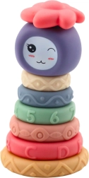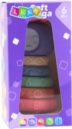 Deze zachte, sensorische pyramide combineert spelen en leren in één. Elke ring heeft een andere textuur, patroon en reliëf, die prikkels bieden voor tactiele verkenning en zintuigontwikkeling. Kinderen oefenen spelenderwijs het sorteren op grootte, leren volgorde en bouwen aan de balans van de hele toren.
