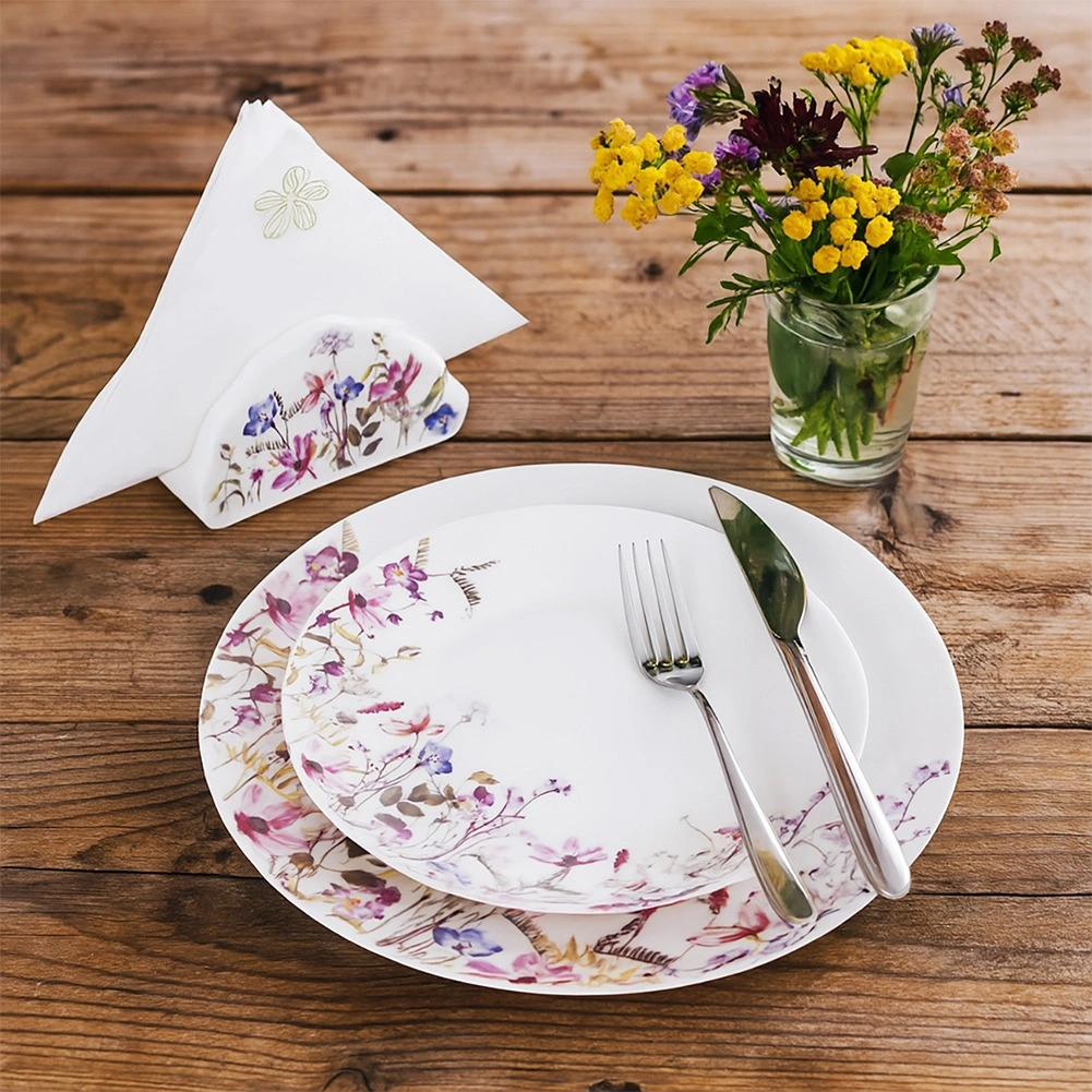 De dinerset LOUKA combineert tijdloos wit porselein met een romantisch bloemmotief dat uw tafelschikking charme geeft. De set is ontworpen voor 6 personen en biedt veelzijdig gebruik, van ontbijt en familie‑lunches tot feestelijke diners.