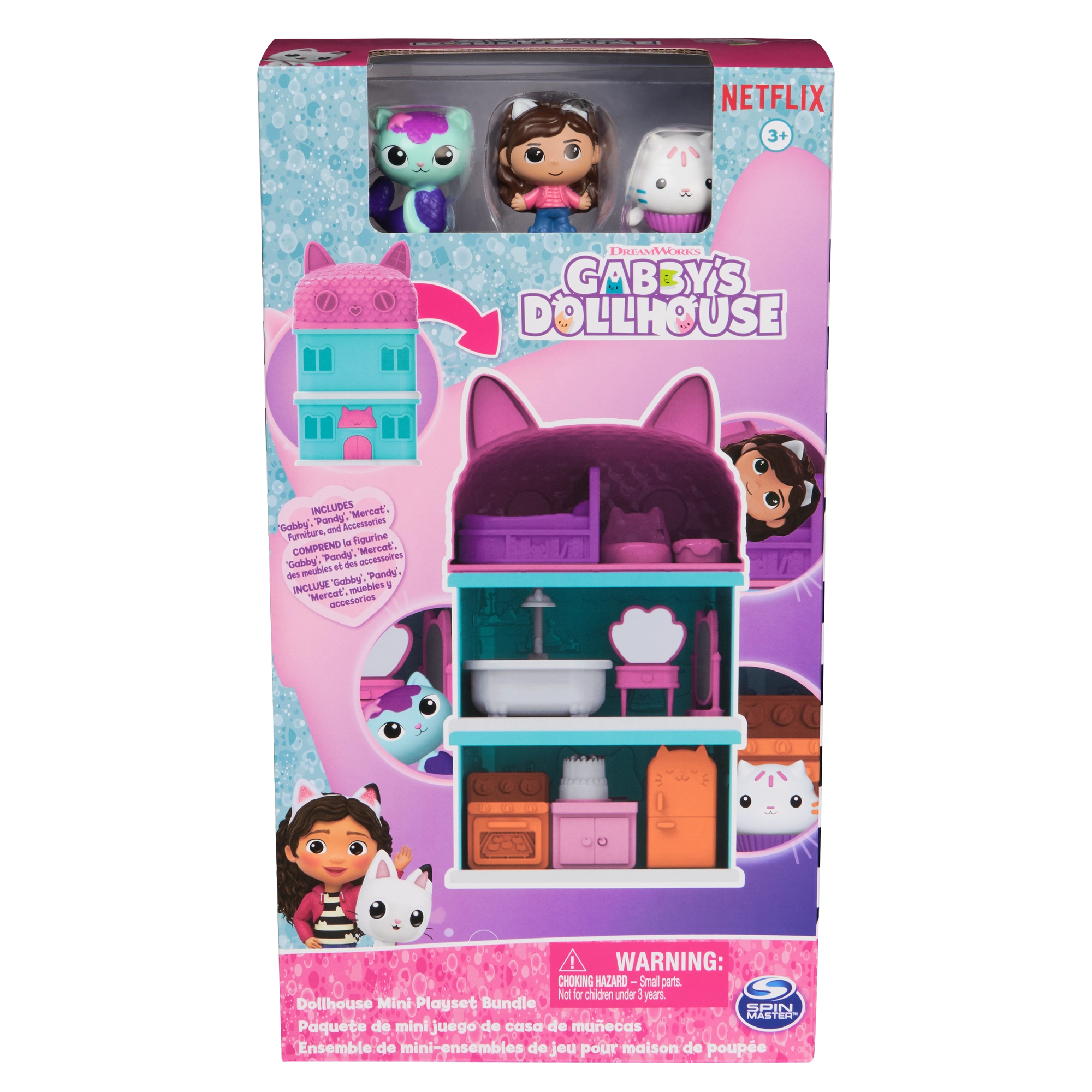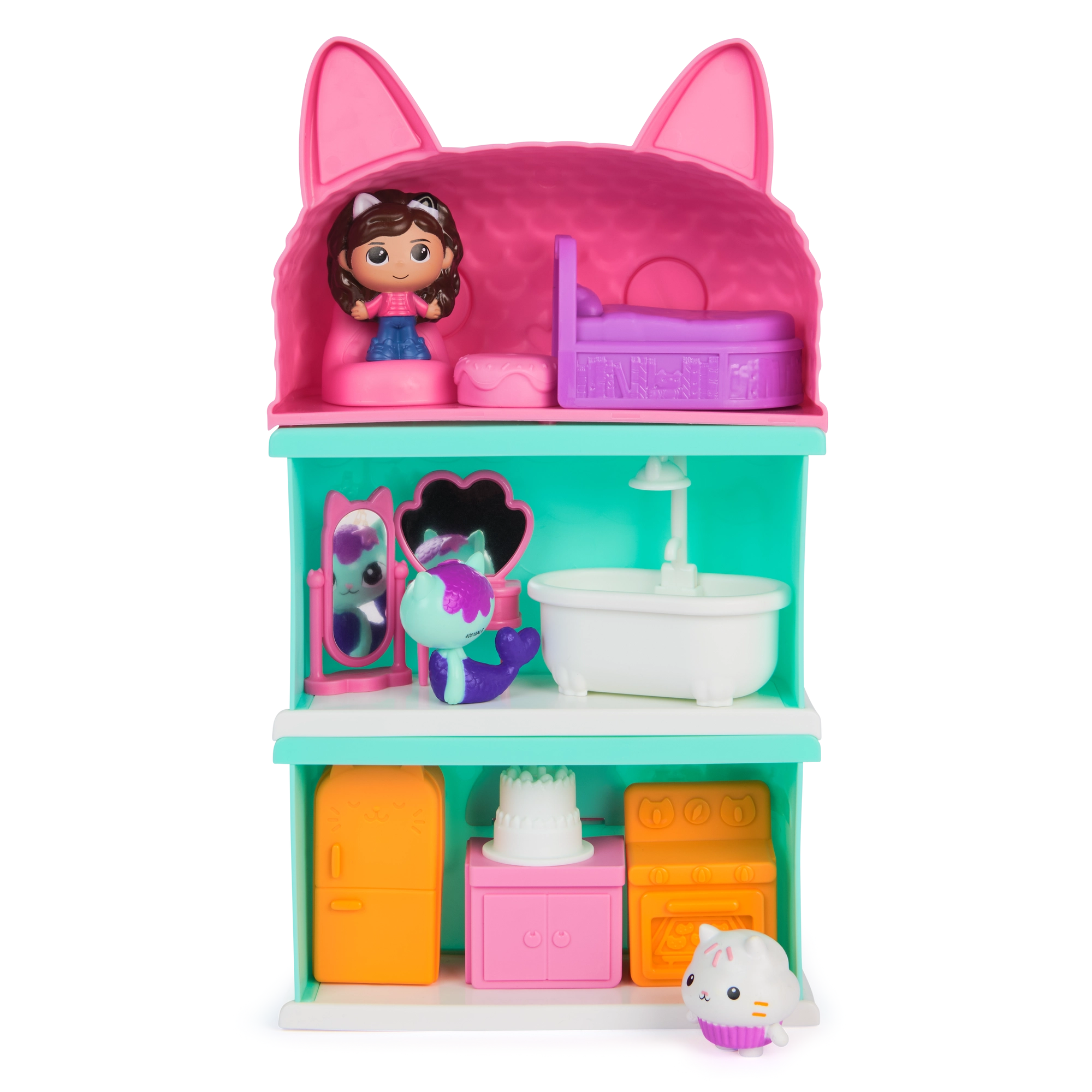 Inbegrepen zijn 3 figuren – Gabby, Zeemeow en Pandy Paws – en meubels voor de slaapkamer, badkamer en keuken. De set ondersteunt creatief en rollenspel, en stimuleert communicatieve vaardigheden en verbeelding. Een geweldig cadeau voor kinderen vanaf 3 jaar en ook een perfecte uitbreiding voor andere sets uit deze serie.