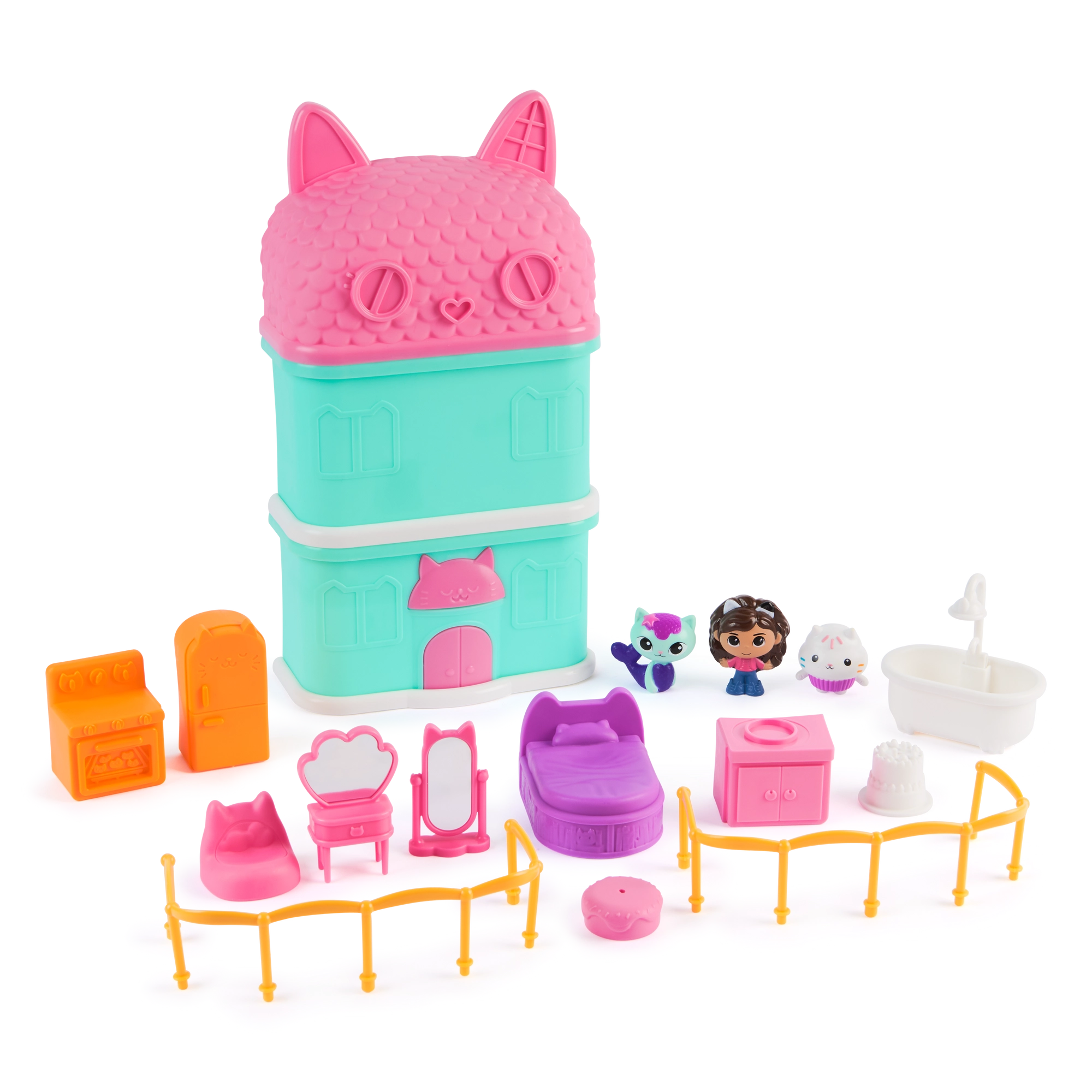 Het mini huisje, geïnspireerd op de populaire serie GABBY'S DOLLHOUSE van Spin Master, zorgt voor uren speelplezier. In de set vind je favoriete personages en thematische kamerinrichting, waarmee kinderen eenvoudig hun eigen verhalen maken. Het compacte formaat maakt het huisje makkelijk mee te nemen en snel speelklaar, waar je ook bent.