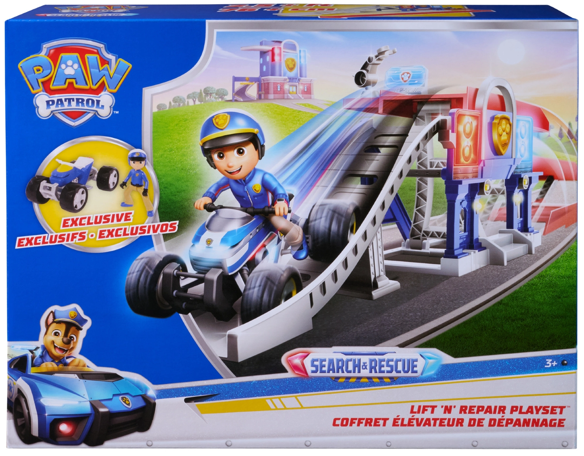 De Lift ’N’ Repair-set van Spin Master zorgt voor urenlang creatief spel geïnspireerd op de wereld van PAW Patrol. De robuuste constructie met helling en “schaar”-lift maakt het eenvoudig om aankomst in de werkplaats, reparaties en een snelle start in actie na te spelen. Inclusief Ryder in Search & Rescue-outfit en zijn ATV, zodat het avontuur meteen na het uitpakken kan beginnen.