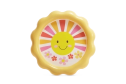 Het kleurrijke motief met een lachende zon en bloemen creëert een uitnodigende sfeer en stimuleert het plezier in zomerse waterspelletjes.
