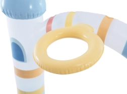 De boog tussen de torens creëert bij aansluiting op de tuinslang een aangename sproeier die afkoelt en het waterplezier vergroot.