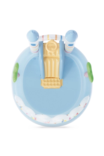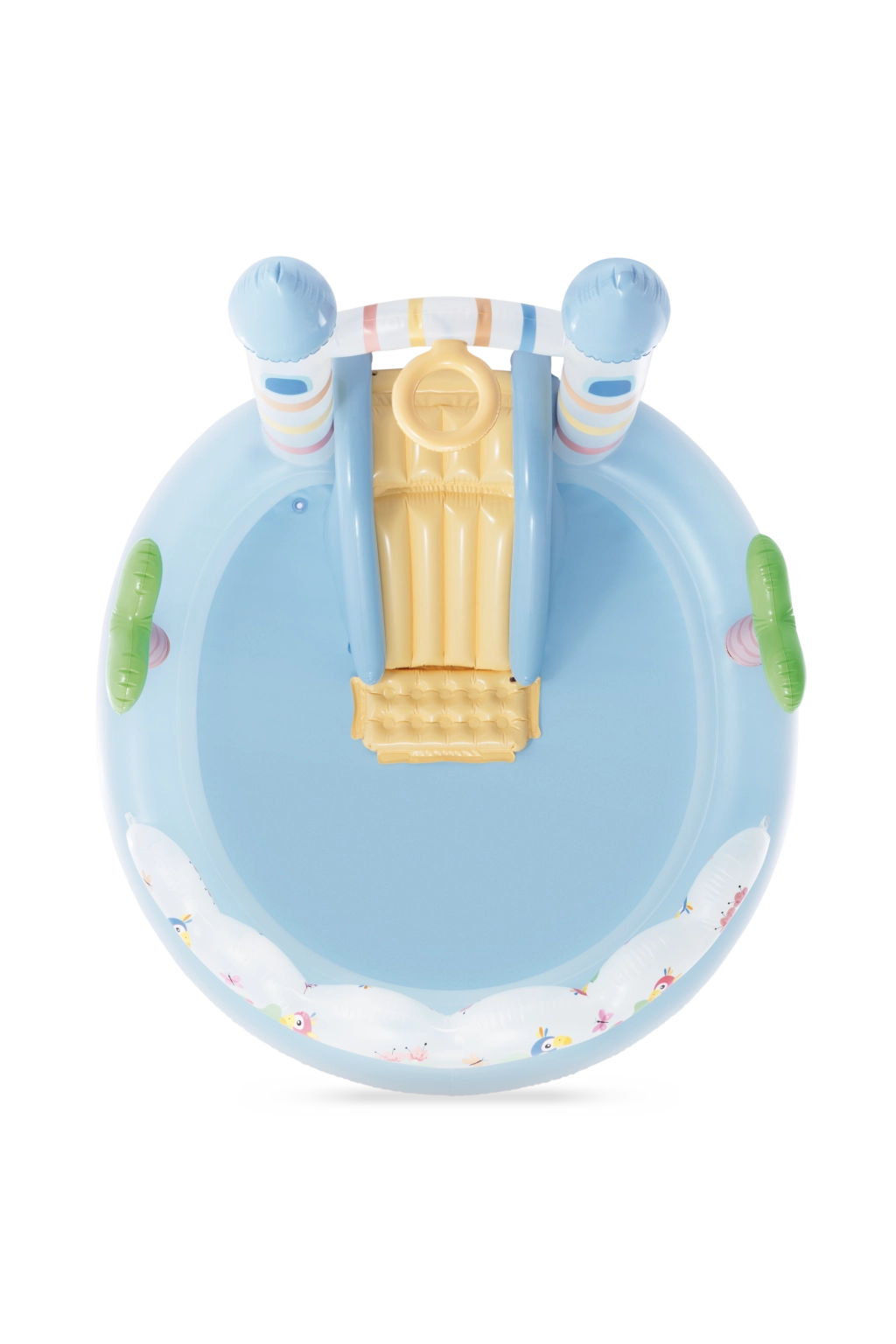 - lichtblauwe kuip, gele glijbaan, kleurrijke decoraties