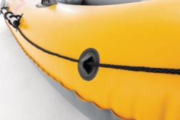 De boot valt op door de opvallende oranje-gele kleur met grijze details voor betere zichtbaarheid. Rondom loopt een sterk touw voor eenvoudig vastpakken, op de boeg vindt u een gelast handvat en aan de zijkanten roeislots en -houders. Dankzij de Boston-ventielen is de voorbereiding in enkele minuten gedaan. Twee opblaasbare zitjes verhogen het comfort van de bemanning en achterste aansluitingen maken motorinstallatie mogelijk voor extra gebruiksmogelijkheden.