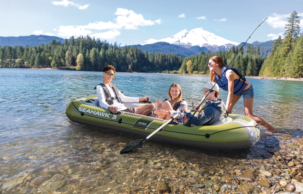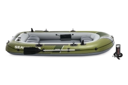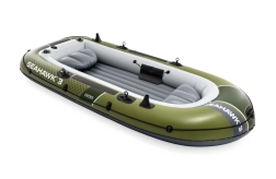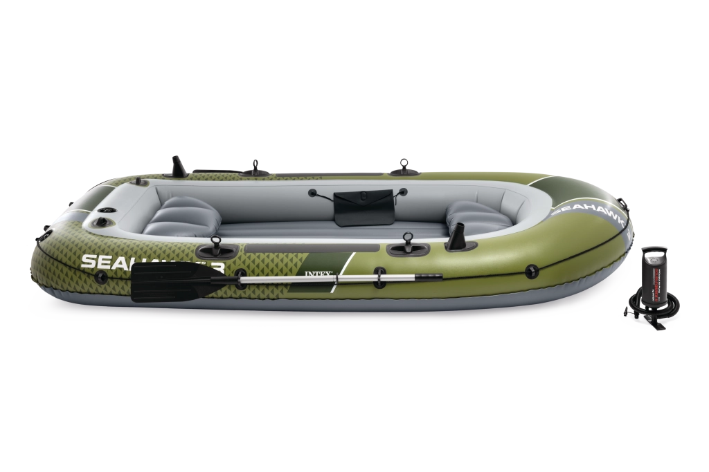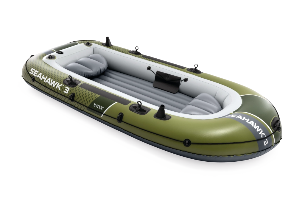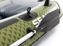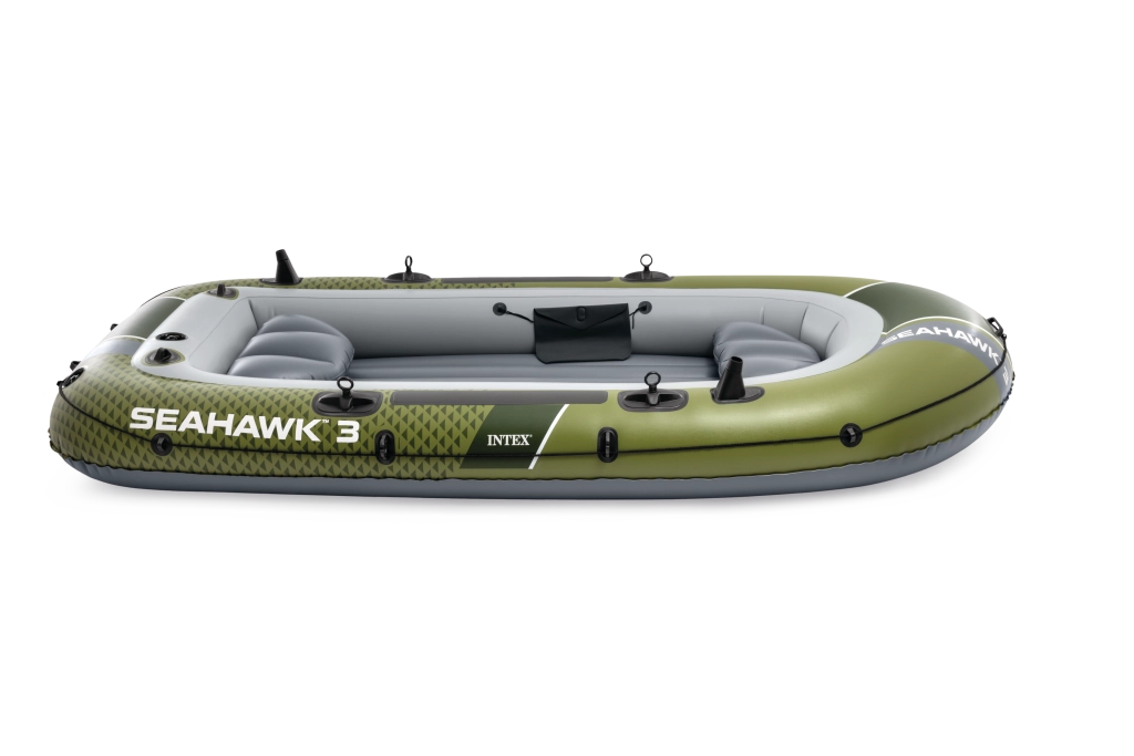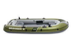 Ontdek comfort en plezier op het water met de opblaasbare boot INTEX Seahawk 3 voor tot drie personen. Biedt duurzaam PVC, drie luchtkamers voor extra veiligheid, een opblaasbare vloer met I-balk voor stabiliteit en snelle Boston-ventielen. In de verpakking vind je 2 aluminium peddels en een handpomp, zodat je meteen kunt vertrekken.