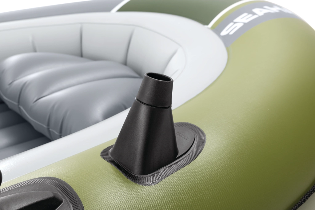 De INTEX Seahawk 3 is een veelzijdige opblaasbare boot voor recreatie, vissen en rustige tochten op meren en rivieren. Dankzij de drie luchtkamers inclusief een hulpkamer in de romp en het slijtvaste vinyl houdt hij stand onder zwaardere omstandigheden en biedt zekerheid op het water. De opblaasbare vloer met I-balk verhoogt de stijfheid en het comfort van de bemanning.