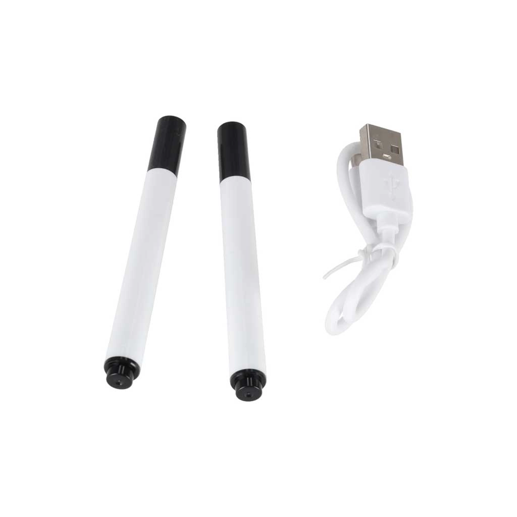 Antislip rubberen basis, 2 zwarte stiften, werkmat en USB-opladen – alles wat een kind nodig heeft om meteen te beginnen.